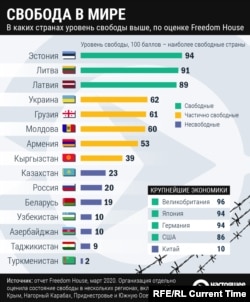 Международная неправительственная организация Freedom House опубликовала ежегодный отчет "Свобода в мире – 2020".
